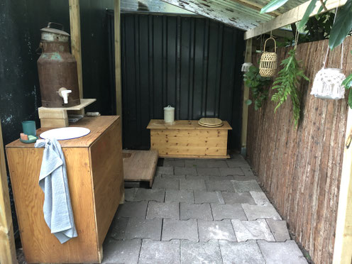 Außenbad inklusive Außendusche sowie Komposttoilette